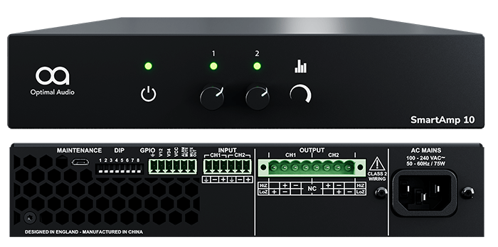 Amplificador de áudio, 2 x 125 W @ 4-16 ohms, 70v, DSP, classe D - SmartAmp 10