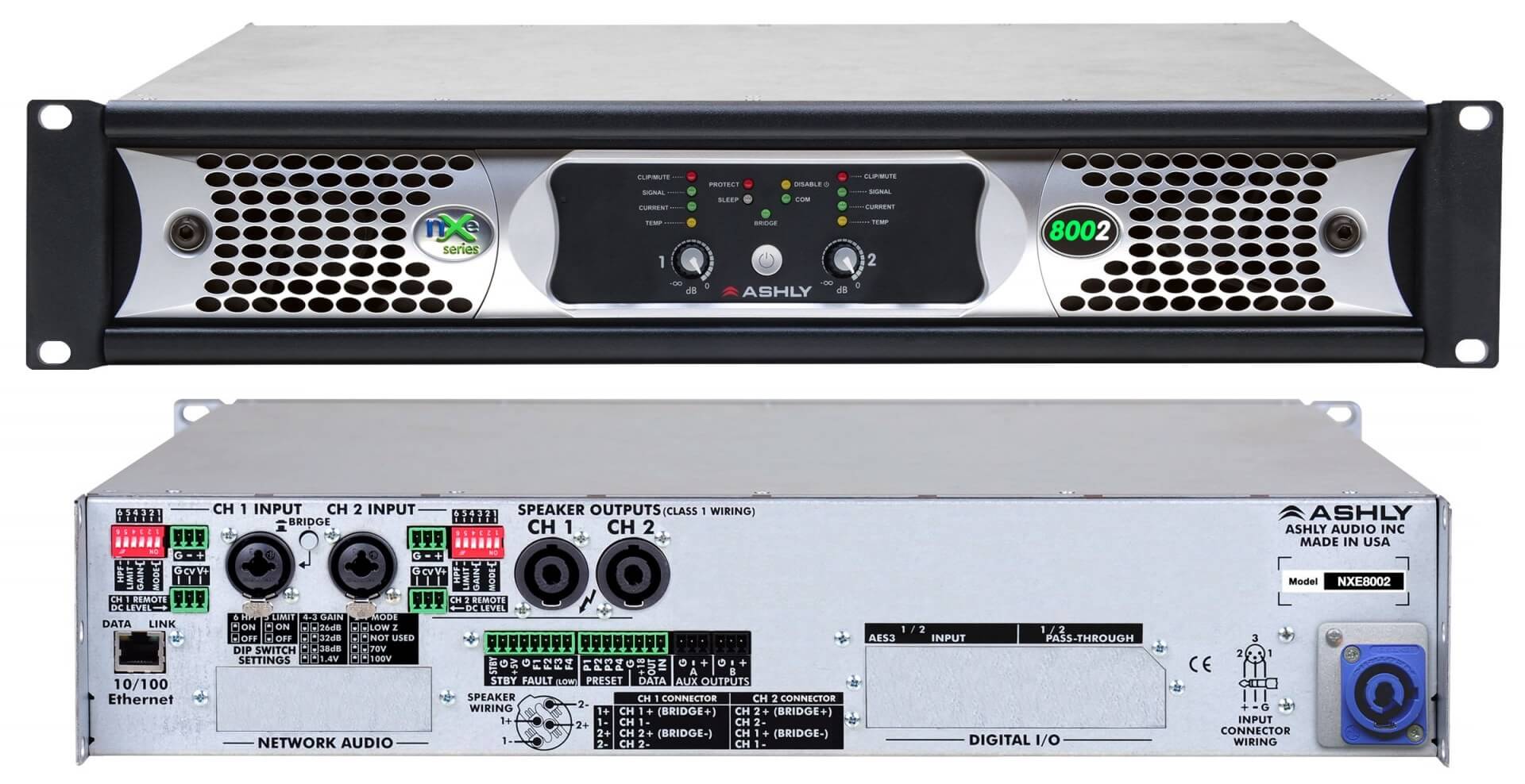 - Os modelos nXe possuem, além das características do modelo nX básico, uma porta Ethernet, controle de agendamentos, saídas auxiliares e outras características adicionais. Possuem também a capacidade de receber interfaces Dante® ou CobraNet®, para conexão remota com áudio digital em rede.