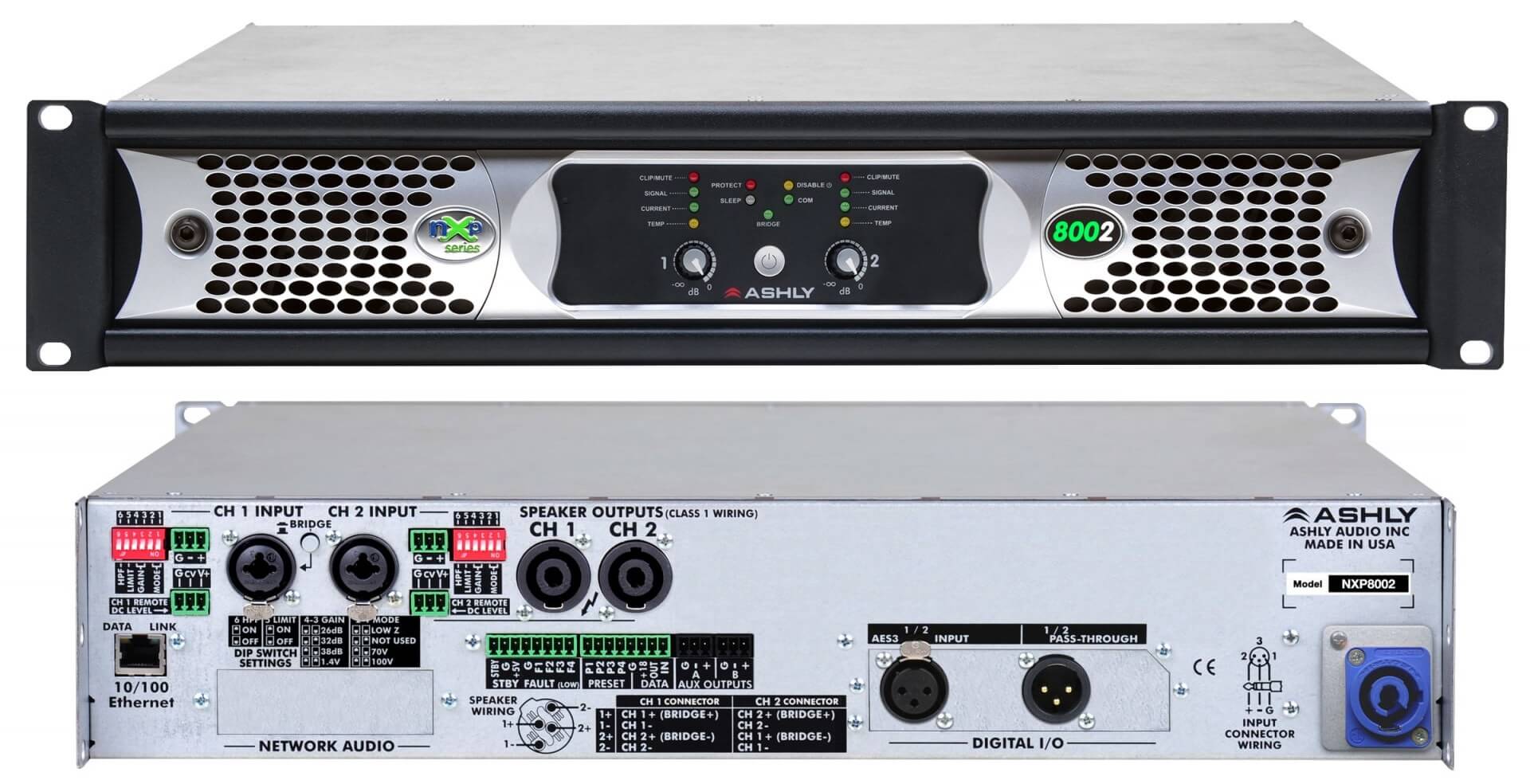 Amplificador de áudio,  2 x  150 W, multimodo, rede, DANTE, DSPnXp1502d
