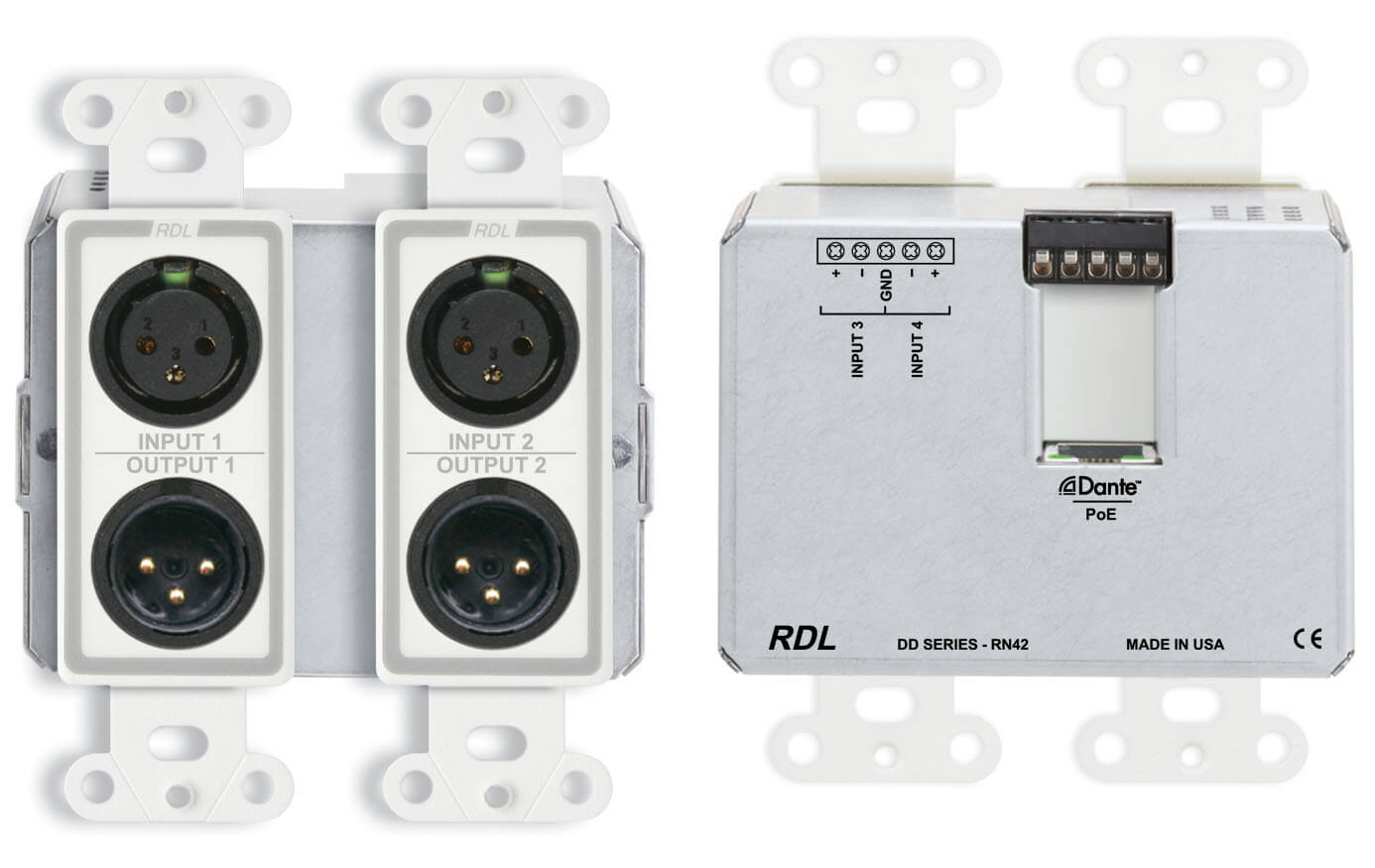 Interface de áudio Dante 4 in (2xXLR +1 in), 2 out XLR, PoE, branco - DD-RN42-W
