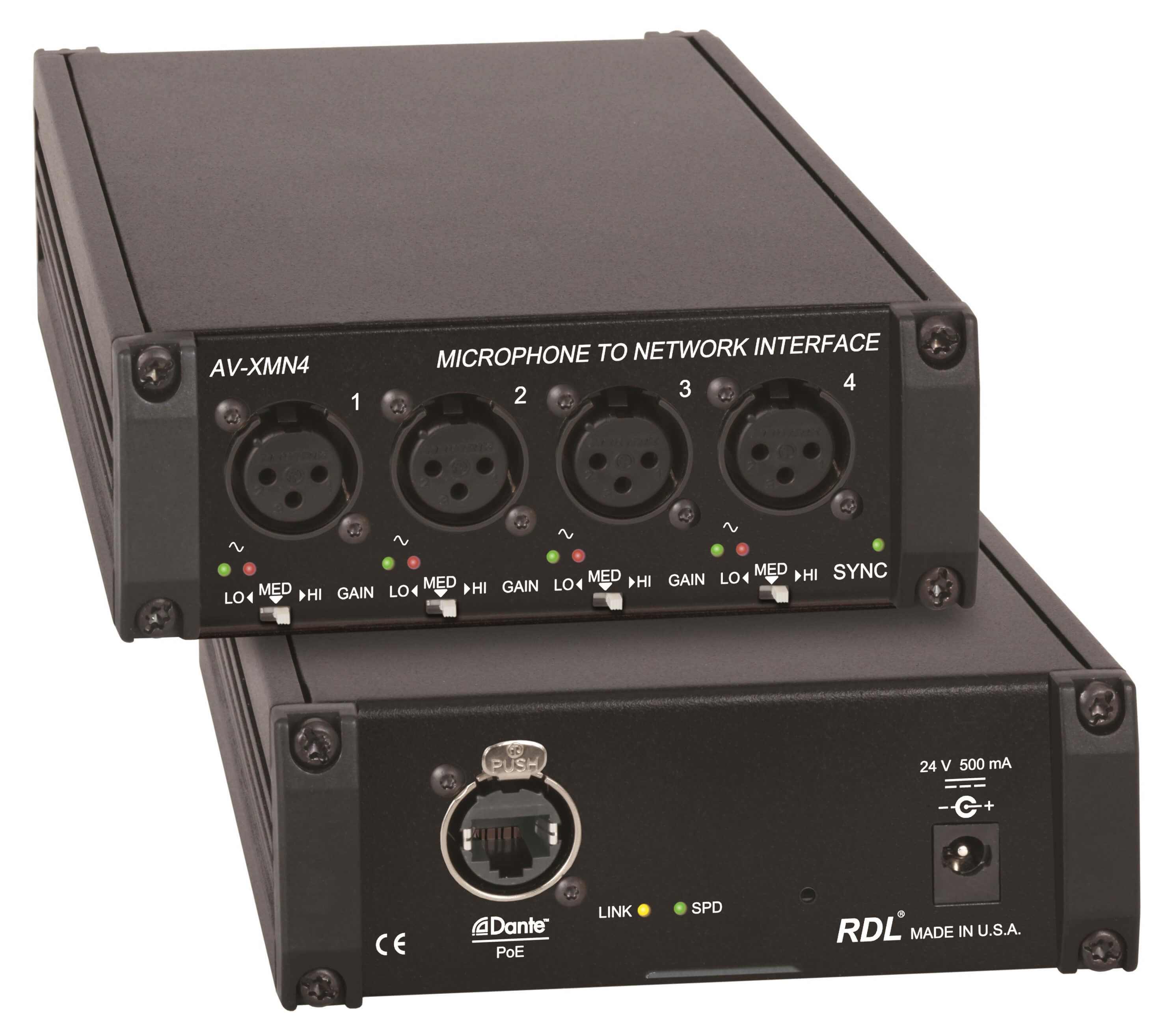 Interface de áudio Dante 4 in MIC XLR, PoE, 24 Vdc - AV-XMN4