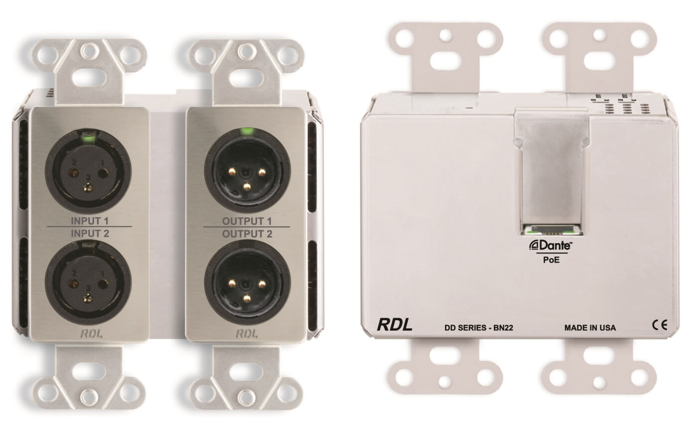 • Interface de áudio Dante  2 in XLR, 2 out XLR, PoE - DDS-BN22