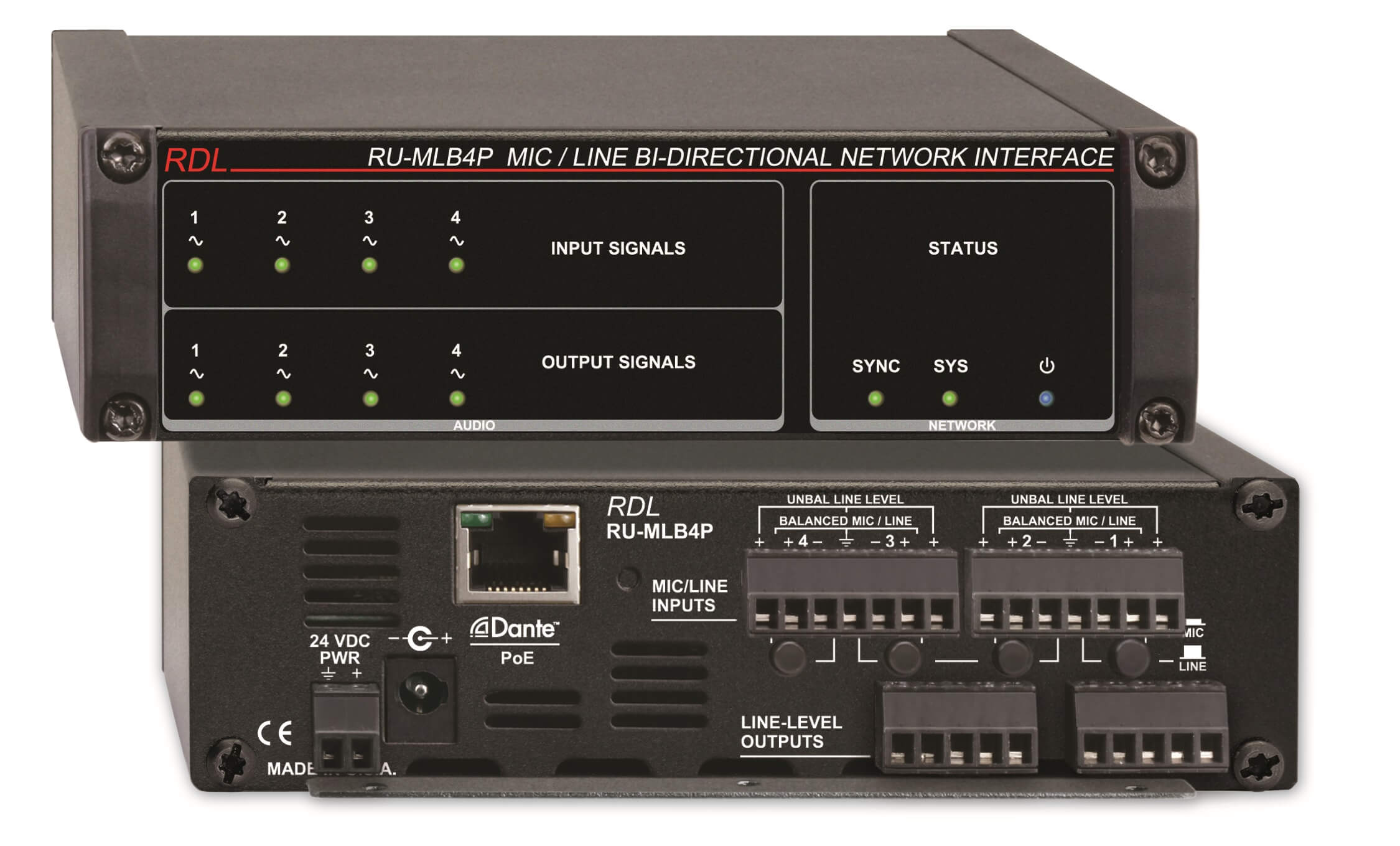 Interface de áudio Dante 4 in MIC/LINE, 4 out, PoE - RU-MLB4P