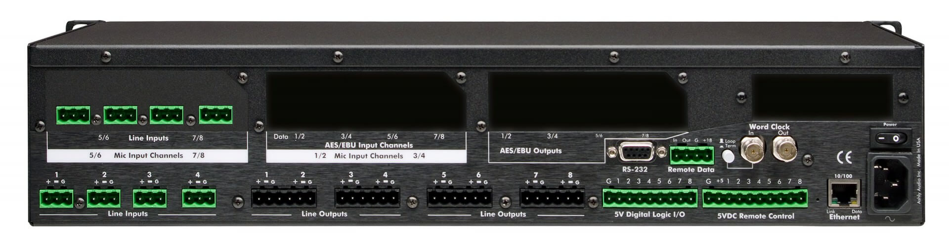 • NE8800t - 8 entradas MIC/LINE, 8 saídas LINE com interface DANTE