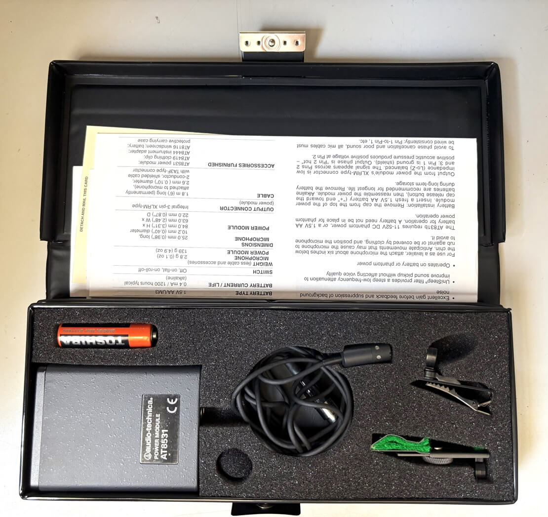 - Microfone de lapea com clip, consegue captar a voz com precisão