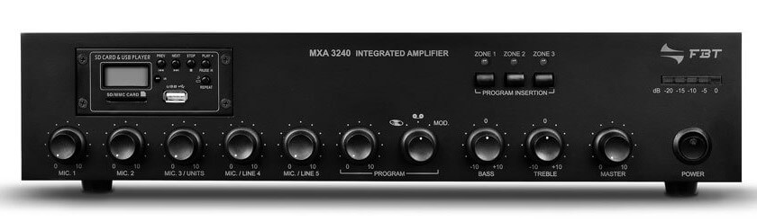 Amplificador de áudio, 3 x 80 W 70/100 V, 8 ohms, mixer 6 entradas - MXA3240