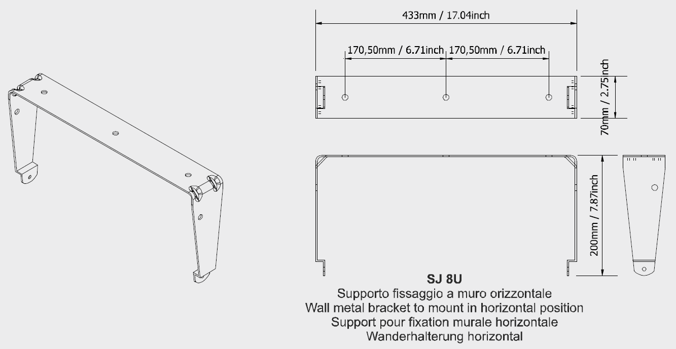 Suporte para montagem horizontal de caixa J8 - SJ8U