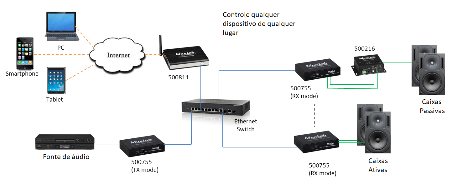 - Extensor de áudio sobre IP - pode ser configurado como transmissor ou receptor