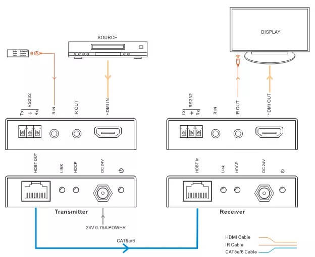 Extensor AV HDMI em UTP (60m 1080p e 40m 4K) com IR, PoC - LK8H