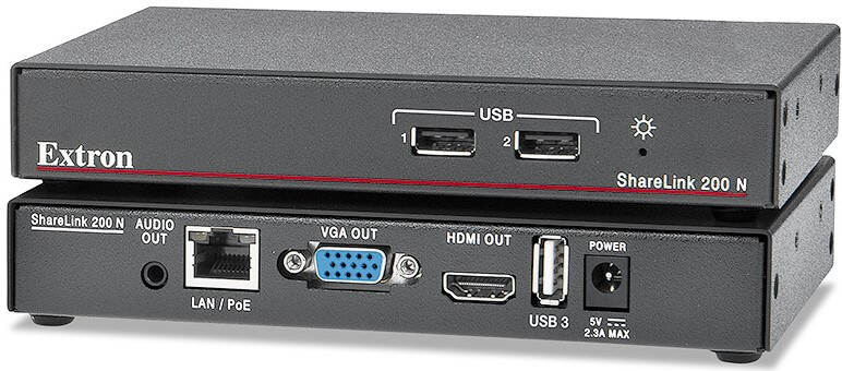 - O equipamento ShareLink 200N da Extron permite que qualquer um apresente um conteúdo de seu laptop, smartfone ou tablet, transformando a sala de reunião em um espaço colaborativo
