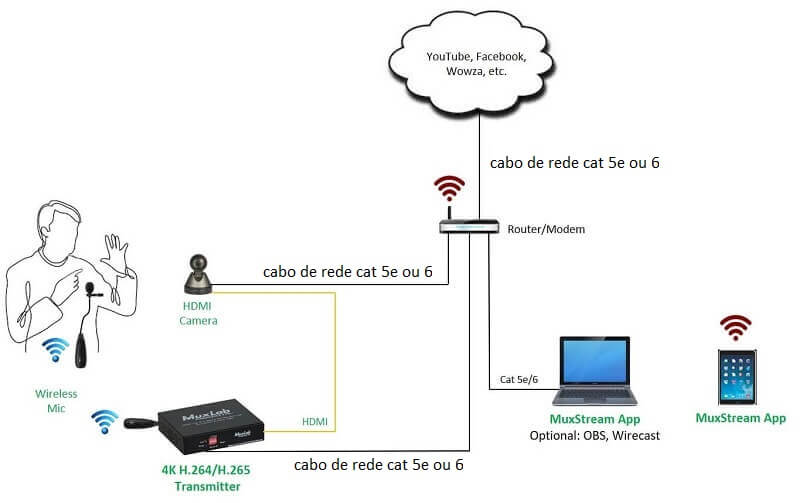 - Este kit permite que apresentações sejam efetivamente transmitidas ao vivo pela Iternet om definiçao de até 4K