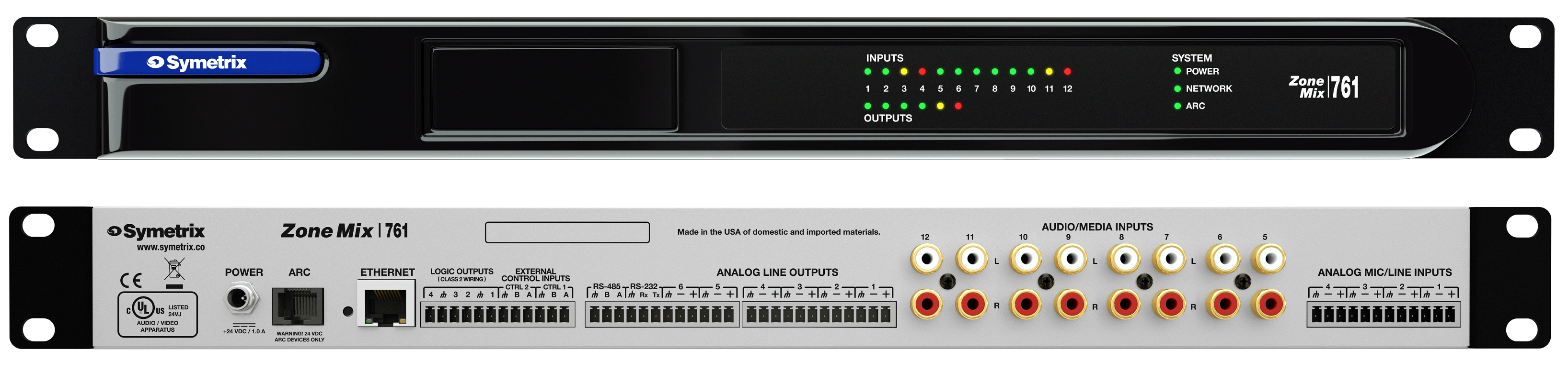 - ZoneMix761 é um processador DSP de funções específicas para paging e distribuição de música de fundo.