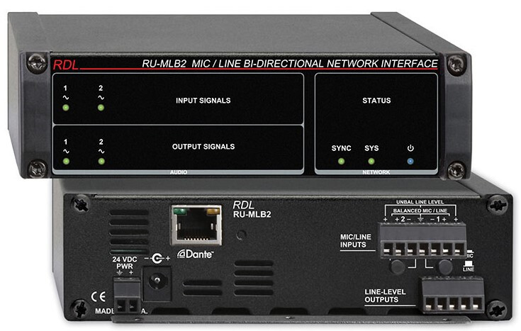 Interface de áudio Dante 2 in MIC/LINE, 2 out, PoE - RU-MLB2P