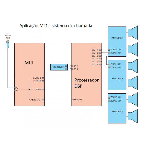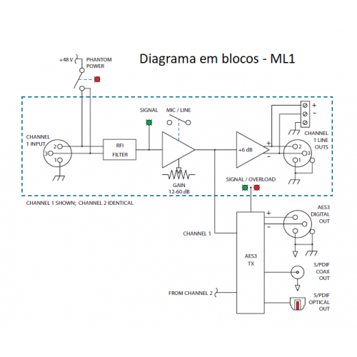 Pre-amplifcador Mic/Line, saidas analog e dig (AES3) - ML1