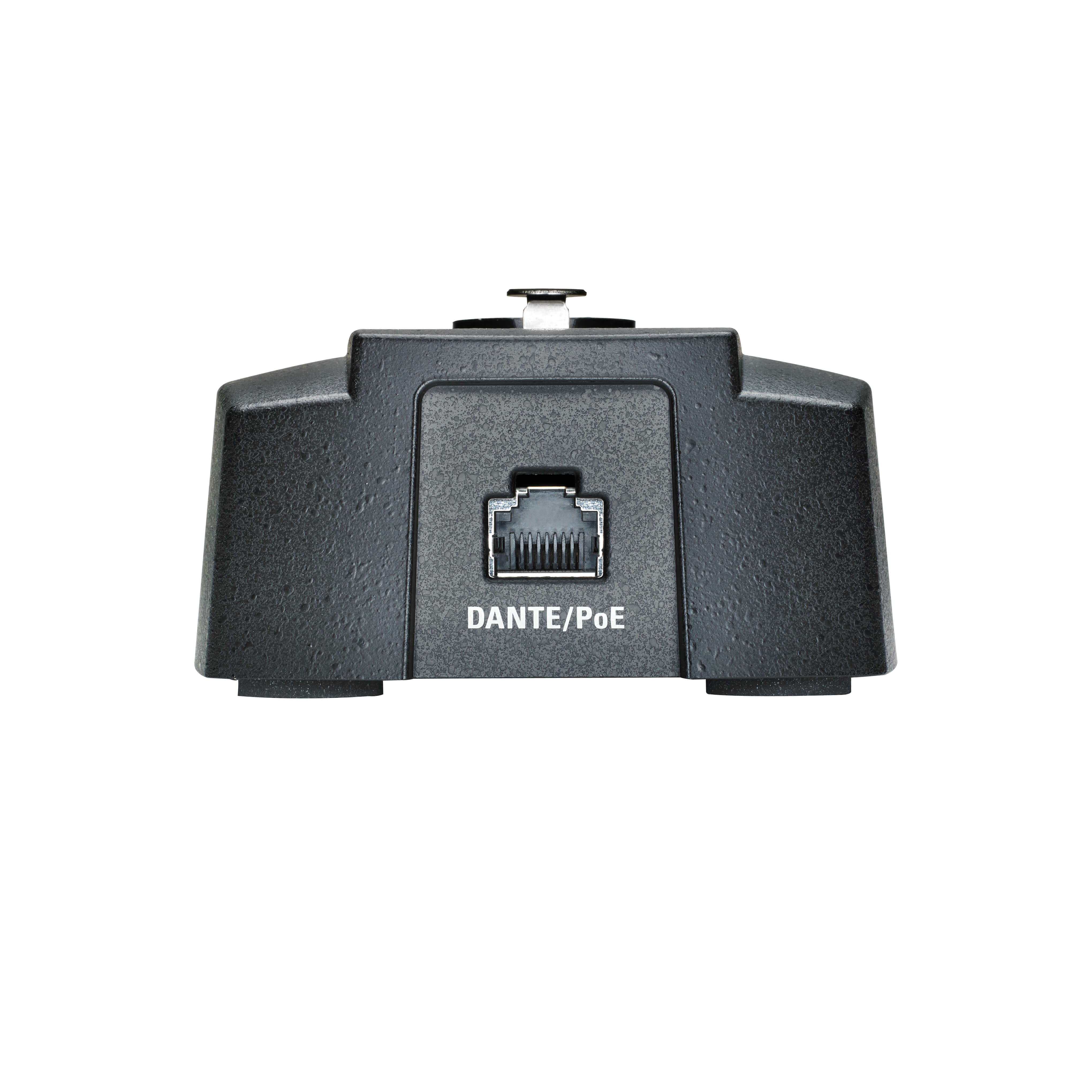 - Este dispositivo é uma interface Dante que recebe, por encaixe, qualquer microfone gooseneck com conector padrão XLR macho de 3 pinos