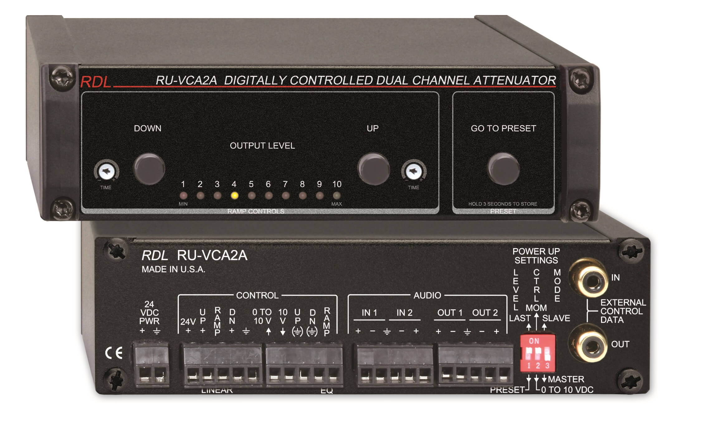 - Os equipamentos RU-VCA2A e RU-VCA6A são atenuadores de áudio, de dois e seis canais, respectivamente, qualidade estúdio, que permite controle local e remoto de sinais em nível LINE