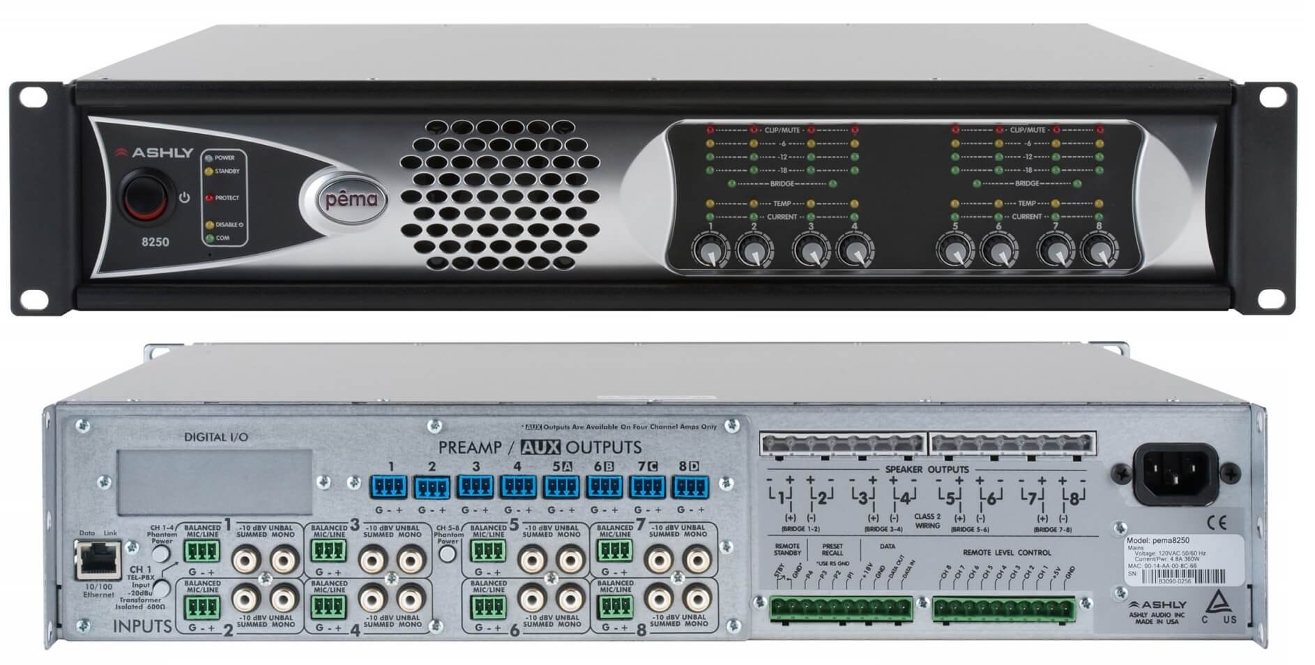 - A série de amplificadores Pema ™, da Ashly, com seu visual elegante, é formada por amplificadores equipados com DSP interno - Protea, com modelos de 4 ou 8 canais com 125 ou 250 Watts por canal