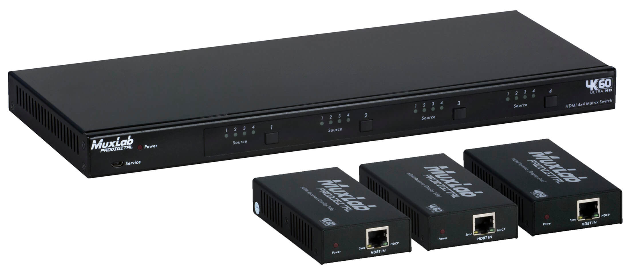 • Três saídas são HDBT e os três receptores estão inclusos