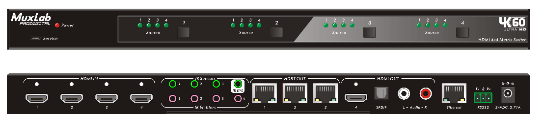 Matriz de vídeo HDMI 4 x 4 (1x HDMI 3x HDBT) + 3Rx - 500412