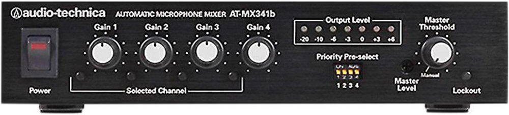 • O mixer automático modelo AT-MX341b automatic é ideal para salas de reunião, seminários, teleconferência, templos religiosos, estúdios de radio e outras aplicações AV.