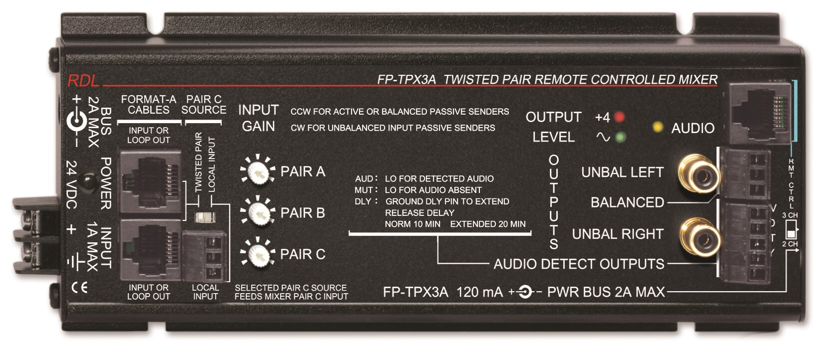 Mixer de áudio 3 entradas, Format-A, controle remoto - FP-TPX3A