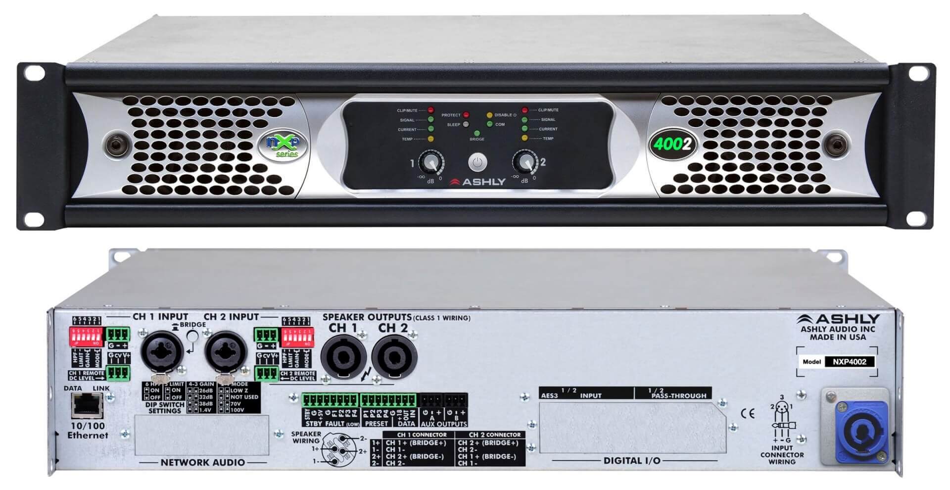 | Amplificador de áudio, 2 x 400 W, multimodo, rede, DANTE, DSP | nXp4002d |