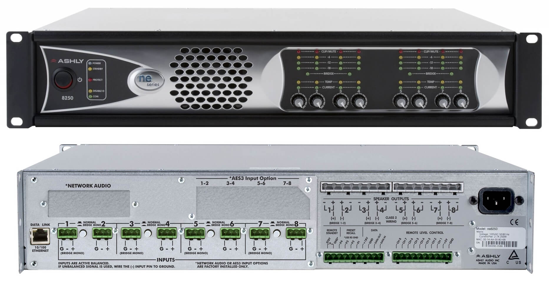 - Projetada com base na tecnologia de amplificação classe D, de alta eficiência energética, com fonte de alimentação chaveada, a série NE de amplificadores fabricados pela Ashly é fácil de instalar, configurar e usar