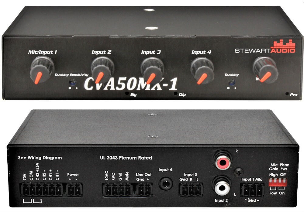 - A família de mixers amplificados CVA50MX-1 foi idealizada para enfrentar demandas de instalações de áudio em edificações com forte requisito de qualidade, precisão, alta eficiência e ciclo de operação estendido, graças ao uso da tecnologia patenteada pela Stewart Signal Sense Technology™