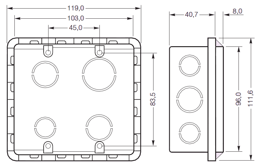 • Caixa de terminação elétrica, para embutir em alvenaria
