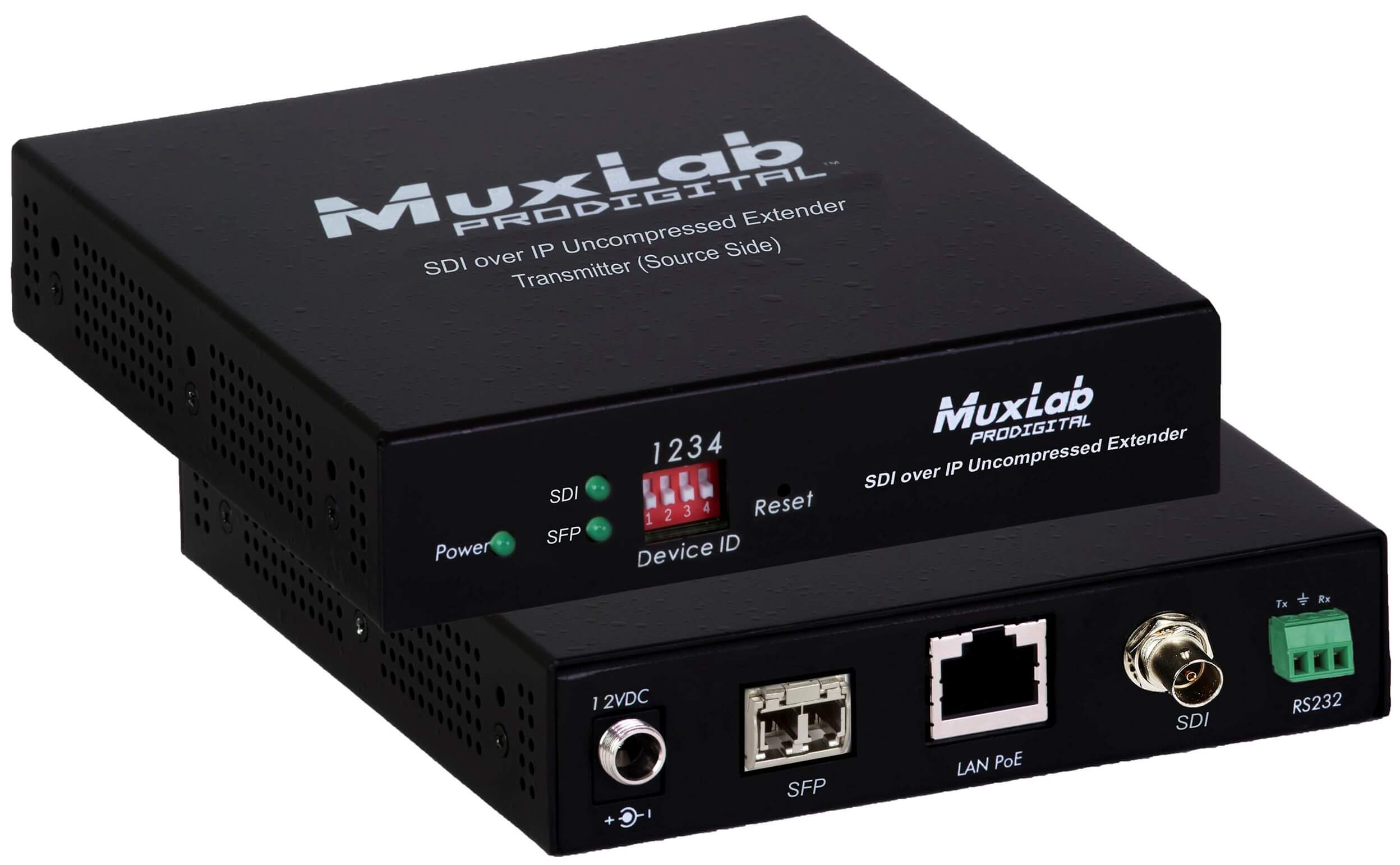Permite que os equipamentos HD-SDI e 3G-SDI sejam se comuniquem em enlaces de até 30 m via cabo UTP cat 5e ou cat 6, ou até 400 m via fibra multimodo OM4 duplex com LC conectores