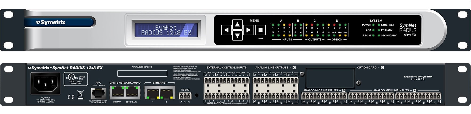 - O Radius 12x8 EX é um processador digital de sinais de áudo, com um slot para cartão opcional, que pode ser de entrada ou saída, configurável, por meio de blocos funcionais