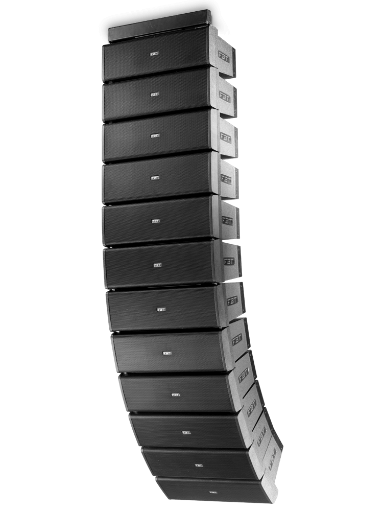 - Ideal para aplicações de pequeno e médio porte, desde uma simples montagem em poste com cobertura de 100° H x 10° V, até montagens em Linha (Line Array) com múltiplos gabinetes