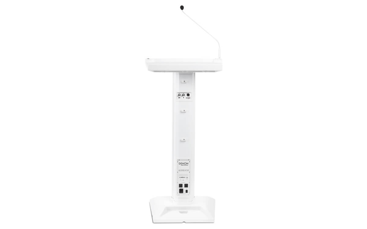 • Não se preocupe: o Lectern Active tem anos de excelência em engenharia de áudio da Denon Professional para respaldar isso. Possui um amplificador com 200 W de potência de pico, acionando quatro robustos woofers de 5 ¼ polegadas e um driver tweeter de alta frequência, que garantem que o público ouvirá cada palavra e nota de sua apresentação com clareza real.