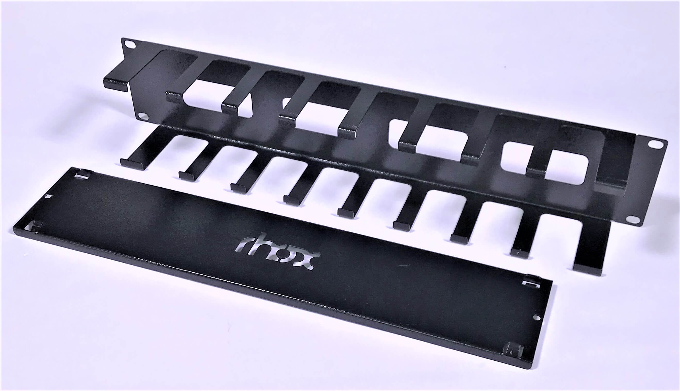 • Painel organizador de cabos para rack padrão 19 polegadas